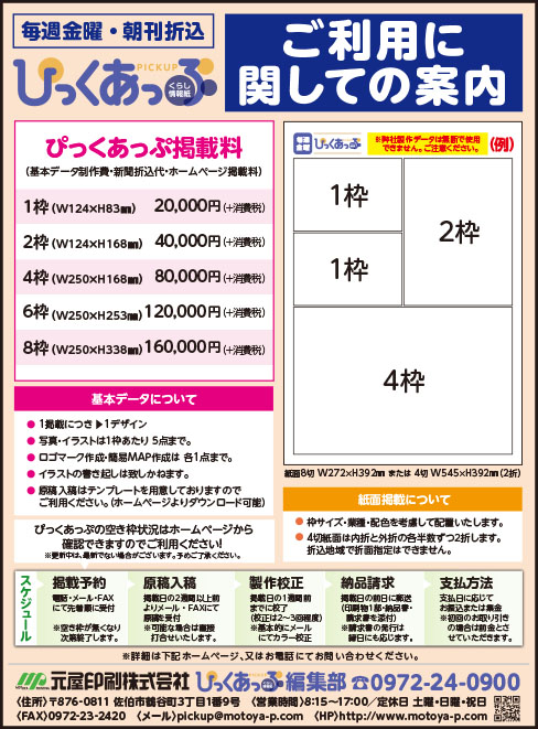 大分県佐伯市の印刷会社です。オフセット印刷をはじめシール印刷、販促グッズなど取り扱っております。毎週金曜日発行のぴっくあっぷも企画・編集しております。